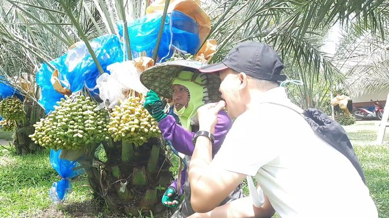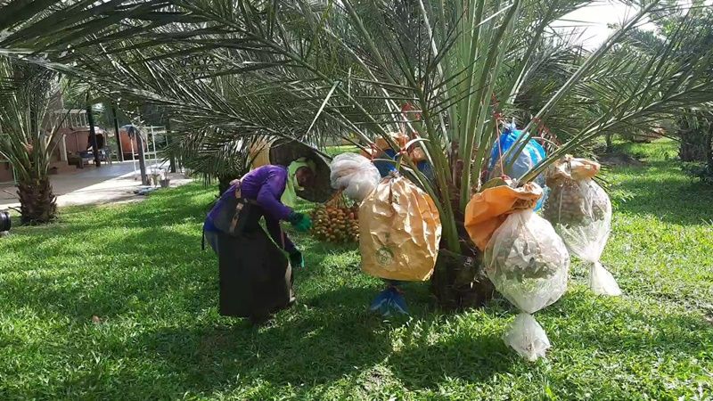 วันที่ 28 พ.ค.64 ที่สวนอินทผลัมของนายวิเชียร เมืองวงค์ บ้านเลขที่ 75 หมู่ที่ 7 บ้านต๋อมดง ต.บ้านต๋อม อ.เมือง จ.พะเยา ที่ได้หันหลังอาชีพพนักงานของบริษัทรับเหมาก่อสร้าง ด้วยเงินเดือน 30,000 บาทมาปลูกผลไม้ ตามหลักเศรษฐกิจพอเพียงของในหลวงรัชกาลที่ 9 โดยได้เลือกปลูกอินทผาลัม หลังจากเริ่มต้นปลูกจำนวน 20 ต้น ซึ่งเป็นพันธุ์ที่นิยมกินผลสดได้รสชาติปัจจุบันขยายพันธุ์กว่า 60 ต้น โดยปลูกมากว่า 3 ปี ชึ่งปีนี้ผลผลิตดีไกล้เก็บผลผลิตขายและสามารถสร้างรายได้มากกว่า 30,000 บาทต่อต้น