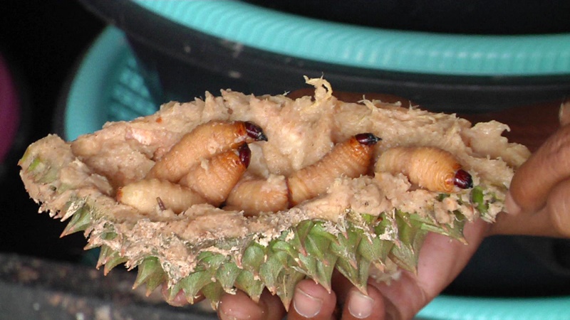 เปลือกทุเรียนกินแล้วห้ามทิ้ง เอาไปเลี้ยงด้วงสาคูเสริมรายได้ช่วงโควิด
