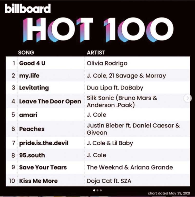 เรียกว่าเปรี้ยวให้สุด แล้วหยุดที่อันดับ 1หลัง “Olivia Rodrigo”เปิดตัวปล่อยเดบิวต์อัลบั้ม “SOUR” ได้แบบสะเทือนวงการ กับ2 เพลงฮิตจากอัลบั้มที่เดบิวต์ขึ้นอันดับ 1billboard Hot 100 ไปเป็นที่เรียบร้อย อย่าง “Good 4 u” และ“drivers license” ที่ครองอันดับ 1 นานถึง 8 สัปดาห์ และยังมีซิงเกิ้ลที่ 2“déjà vu” กับการเปิดตัวอันดับ 8 ช่วงเดือนเมษายนที่ผ่านมา และตอนนี้ก็กำลังเป็นกระแสในTikTok ทั่วโลกรวมถึงบ้านเรา ที่แฟนเพลงกำลังอินกันสุดๆ กับความหมายเพลงที่ “Olivia” แอบแซะแฟนเก่าได้เจ็บจี๊ด สามารถฟังอัลบั้ม “SOUR” ได้แล้ว ทางด้าน “Olivia” เป็นปลื้มสุดๆ เธอได้ขอบคุณโปรดิวเซอร์คู่บุญอย่าง “Dan Nigro” และศิลปินนักร้องนักแต่งเพลงขวัญใจคออินดี้อย่าง “Alexander23” ที่มาร่วมเขียนเพลงนี้ “Good 4 u”ด้วยการโพสต์ภาพชาร์ต billboard ผ่าน Instagram ส่วนตัวพร้อมแคปชั่นว่า “Good 4 u” เป็นเพลงอันดับ 1 !!!!!!!! ฉันดีใจมากเลย!!!!! ฉันรักคุณ@dan_nigro @alexander23”