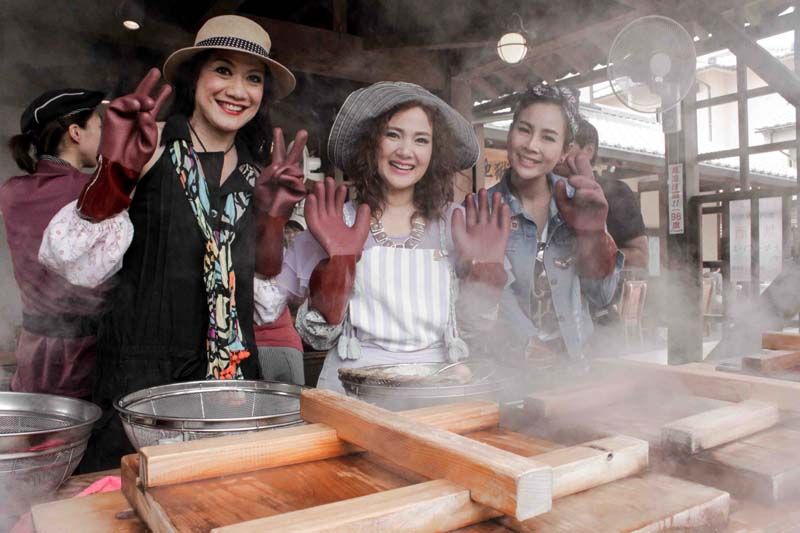 ยังต้อง Work from Home กันอยู่นะ! ทริปนี้ “คุณน้ำผึ้ง, น้อย” ก็ยังวนเวียนอยู่ที่ จ.โออิตะ ประเทศญี่ปุ่น คราวนี้อยู่กันที่เมืองเบปปุ เมืองที่มีบ่อน้ำร้อนธรรมชาติมากที่สุดในญี่ปุ่น จนได้รับฉายาว่าเป็นเมืองหลวงของออนเซ็น เริ่มจากที่ “ร้านจิโกะคุมุชิโคโบ คันนาว่า” ที่ใช้ไอความร้อนของออนเซ็นธรรมชาติมานึ่งอาหาร พอเติมพลังกันได้ที่ก็พาไปสัมผัสอีกหนึ่งความแปลกของเมืองเบปปุกันต่อที่ “จิโกะคุเมะกุริ” ซึ่งเป็นที่ตั้งของกลุ่มบ่อน้ำร้อนที่มีชื่อเสียง เปรียบได้ว่าเป็นขุมนรกแห่งบ่อน้ำร้อนอย่าง “บ่อนรกทะเล หรือ อุมิจิโกะคุ”ที่มีความร้อนถึง 98 องศา แต่มีสีฟ้าใสที่ดูเหมือนจะเย็นสบาย และ “บ่อนรกของบ่อเลือด หรือชิโนะอิเคจิโคะคุ” ที่มีสีแดงสดดูเหมือนจะเดือดอยู่ตลอดเวลา