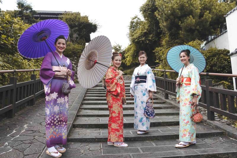 จากเมืองเบปปุ…ไปแปลงกายใส่ชุดกิโมโนที่ “ร้านวะระคุอัน” ในเมืองคิสุคิ แต่จะให้แต่งตัวสวยๆ ยืนโพสท่าอยู่แต่ในร้านก็ดูแปลกๆ งานนี้เลยต้องพาควงกันออกมายืนเฉิดฉายย่านบ้านเก่าของเมืองคิสุคิในยุคเอโดะที่ได้รับการยอมรับให้เป็น “ทิวทัศน์ของเมืองทางประวัติศาสตร์ที่มีความเหมาะสมกับกิโมโนมากที่สุด” ซึ่งเป็นแห่งแรกของประเทศญี่ปุ่น และมาต่อกับวิถีของเกษตรกรที่ “ชุมชนบ้านร้อยปี โทคิเอดะ”อยู่ใน ตำบลอาจิมุ เมืองอุสะ ซึ่งถือเป็นต้นกำเนิดของการท่องเที่ยวแบบ Green Tourism ที่เปิดให้นักท่องเที่ยวได้ทดลองใช้ชีวิตตามวิถีของคนในชุมชนเที่ยวจนขาลากกันต่อที่ ปราสาทนาคะสึ ภายในจัดแสดงสมบัติเก่าแก่ของไดเมียวและเหล่าซามูไร โดยเฉพาะชุดเกราะหลากหลายรูปแบบ และมาปิดท้ายเดินเล่นขี่จักรยานชม เมืองยูฟุอิน ซึ่งเป็นเมืองที่มีชื่อเสียงด้านออนเซ็นเทียบเท่ากับเมืองเบปปุเลยทีเดียว