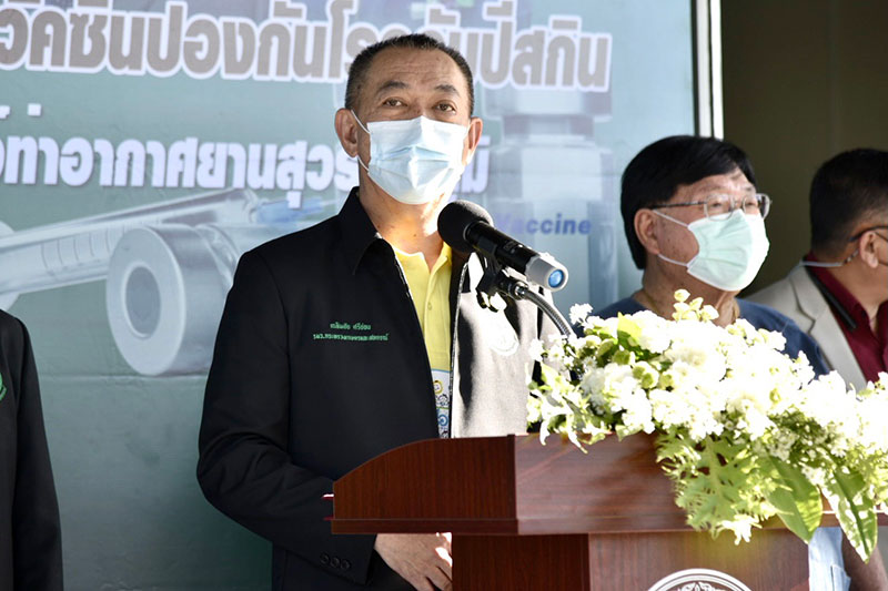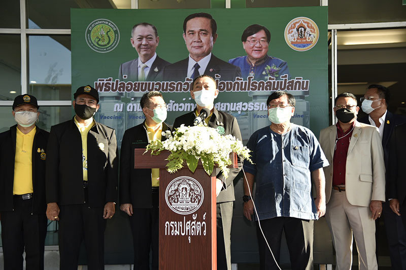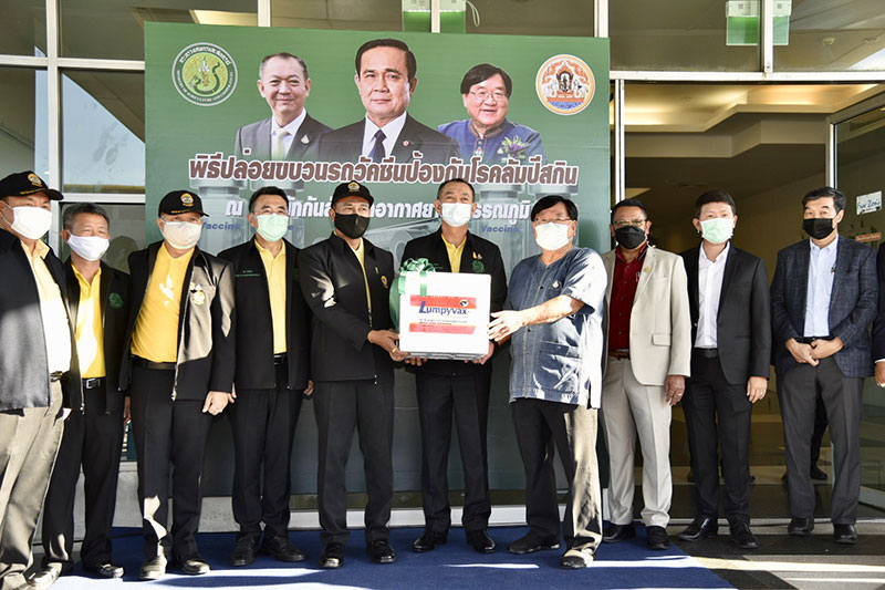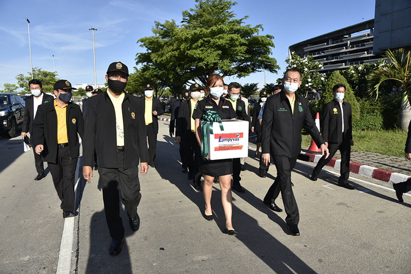 30 พฤษภาคม 2564 เวลา 17.00 น. ดร.เฉลิมชัย ศรีอ่อน รัฐมนตรีว่าการกระทรวงเกษตรและสหกรณ์ พร้อมด้วยนายประภัตร โพธสุธน รัฐมนตรีช่วยว่าการกระทรวงเกษตรและสหกรณ์ ได้เดินทางมายังอาคารสำนักงานเขตปลอดอากร ชั้น1 ท่าอากาศยานสุวรรณภูมิ จังหวัดสมุทรปราการ เพื่อร่วมในพิธีรับมอบวัคซีนโรคลัมปี สกิน จากประเทศแอฟริกาใต้ โดยมีนายสัตวแพทย์สรวิศ ธานีโต อธิบดีกรมปศุสัตว์ กล่าวรายงาน พร้อมให้การต้อนรับร่วมกับผู้บริหาร และเจ้าหน้าที่ที่เกี่ยวข้องทั้งนี้ สายการบินเอมิเรตส์ เที่ยวบิน EK766/EK384 เส้นทางโยฮันเนสเบิร์ก-กรุงเทพฯ ได้นำวัคซีนโรคลัมปี สกิน (Lumpy Skin Vaccine : LSDV) จำนวน 60,000 โดส ที่บรรจุในคอนเทนเนอร์ชนิดปรับควบคุมอุณหภูมิ ออกจากเดินทางจากประเทศแอฟริกาใต้ เมื่อวันที่ 27 พ.ค. ที่ผ่านมา ในเวลา 19.10 น. ก่อนแวะพักที่เมืองดูไบ สหรัฐอาหรับเอมิเรตส์ และเดินทางออกจากเมืองดูไบ ในวันที่ 30 พ.ค. เวลา 02.50 น. มาถึงท่าอากาศยานสุวรรณภูมิ ในเวลา 12.15 น. ของวันนี้
