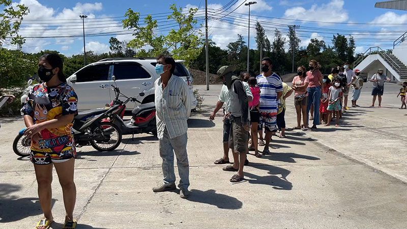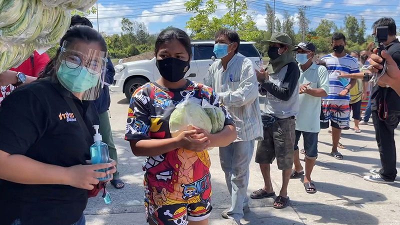 แม้ว่าจะช่วยไม่ได้มากแต่เชื่อว่าเราสามารถเป็นกำลังใจและบรรเทาปัญหาเรื่องปากท้องได้อย่างน้อยก็วันหรือสองวัน โดยบรรยากาศ มีชาวบ้านในชุมชนต่างอุ้มลูกจูงหลาน ทยอยเดินทางออกมาต่อคิวรับอาหารกันอย่างไม่ขาดสาย ทั้งนี้ได้กำหนดให้หนึ่งคนสามารถเลือกอาหารที่จะนำกลับไปได้สามอย่าง เพื่อที่จะสามารถแจกได้อย่างทั่วถึง กระทั่งผ่านไปไม่นานของที่เตรียมมาได้หมดลง