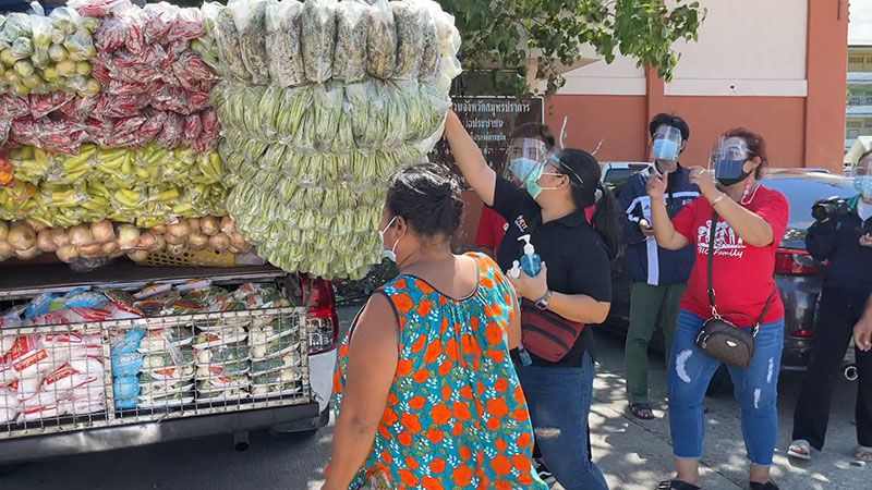 นายภากรณ์ ใจยา อายุ 25 ปี ซึ่งเป็นเจ้าของร้านข้าวแกงละเวิ๊ก กล่าวว่า ปกติทางร้านได้ทำข้าวกล่องแจกฟรีให้กับบุคลาการทางการแพทย์ตามโรงพยาบาลต่างๆ และหน่วยงานที่ลงพื้นที่ตรวจคัดกรองเชิงรุกตามชุนชนอยู่แล้ว รวมถึงผู้ที่ได้รับผลกระทบ จึงเพิ่มแนวทางเพื่อให้เข้าถึงชุมชนให้มากขึ้น โดยการเหมารถขายกับข้าวพุ่มพวง ซึ่งมีอาหารสดและผัก เป็นอีกหนึ่งทางเลือกให้กับชาวบ้าน ที่สามารถนำของสดเหล่านี้ กลับไปประกอบอาหารตามเมนูที่ตนเองชอบเลี้ยงครอบครัวได้ ก่อนหน้านี้ทางเรายังได้นำถุงยังชีพไปมอบให้กับผู้ที่เดือนร้อนไปแล้วหลายแห่ง ของที่นำมามอบให้เราเองก็เลือกของที่สามารถใช้ได้จริงเหมือนกับที่เราใช้ในชีวิตประจำวัน และจะทำต่อไปจนกว่าสถานการณ์จะดีขึ้น ส่วนรถที่เหมามาทั้งคันใช้เงินไปประมาณหมื่นกว่าบาท