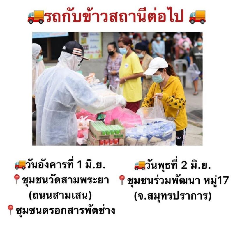 ส่วนสถานีต่อไปที่รถกลับข้าว บอย เจี๊ยบ จะไปนั่นก็คือ วัน อังคาร ที่ 1 มิถุนายน ชุมชนวัดสามพระยา (ถนนสามเสน) ชุมชนตรอกสารพัดช่าง และ วัน พุธ ที่ 2 มิถุนายน ชุมชนร่วมพัฒนา หมู่17 (จ.สมุทรปราการ)