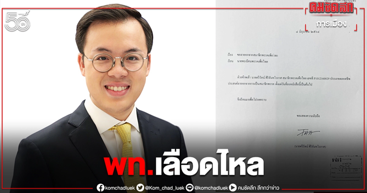 ผมมีความอึดอัดและลำบากใจที่ต้องกราบเรียนทุกท่านให้ทราบว่า วันนี้ผมได้ตัดสินใจลาออกจากการเป็นสมาชิก “พรรคเพื่อไทย” แล้วครับ