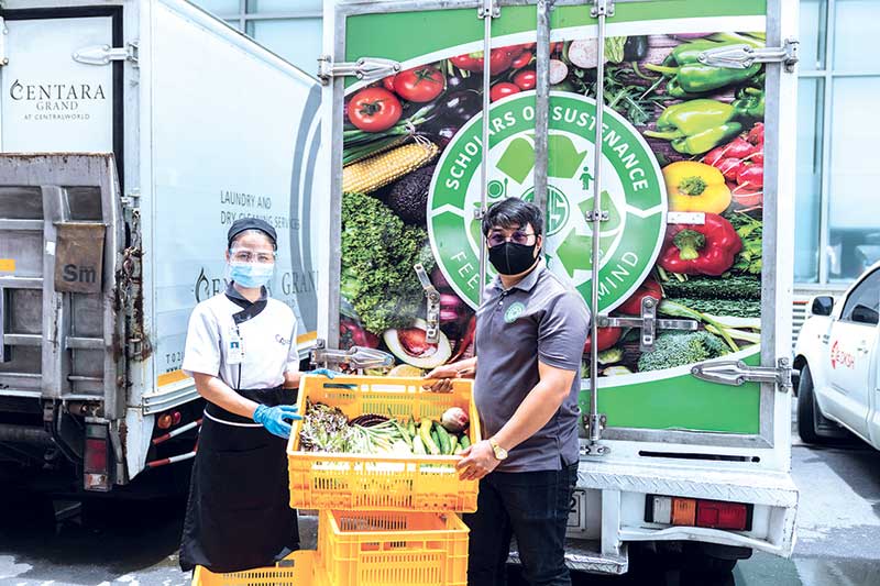 นอกจากนี้ กลุ่มเซ็นทรัลได้นำนโยบายการจัดการขยะอาหาร ที่เหลือจากการจำหน่าย ของ ท็อปส์, แฟมิลี่มาร์ท, มิสเตอร์โดนัท และโรงแรมในเครือเซ็นทารา นำอาหารส่วนเกินที่เหลือจากการจำหน่าย บริจาคให้ผู้เปราะบางทางสังคมผ่านมูลนิธิ SOS (Scholars of Sustenance) จำนวน 203 ตันต่อปี คิดเป็นมื้ออาหารจำนวน 855,869 มื้อ ในปีพ.ศ. 2563 โดยคิดเป็นการลดการปล่อยก๊าซเรือนกระจกได้ 380 ตัน คาร์บอนเทียบเท่าในขณะที่ธุรกิจโรงแรมยังมีโครงการลดปริมาณอาหารทิ้งตั้งแต่ต้นทางด้วยการทำงานร่วมกับหัวหน้าเชฟเพื่อวางแผนการใช้วัตถุดิบจากขั้นตอนการเตรียม จนสู่การแปรรูปขยะอาหารที่เกิดขึ้นเป็นปุ๋ยอินทรีย์และก๊าซชีวภาพ กลับนำมาใช้ภายในโรงแรม
