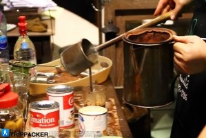 ตรงกันข้าม หากเป็นการชงแบบสมัยก่อน ในยุค 2499 ที่อันธพาลกำลังครองเมือง อาจจะต้องใช้มือชง ตามแบบฉบับร้านกาแฟของคนจีนในอดีต โดยใส่กาแฟที่บดแล้ว ไว้ในถุงผ้าขาวบาง ซึ่งจะมีที่จับคล้ายๆสวิงตักปลา จากนั้นก็เทน้ำร้อน ที่อยู่ในกาชงสแตนเลส สลับไปมา จนได้กาแฟที่หอมละมุน