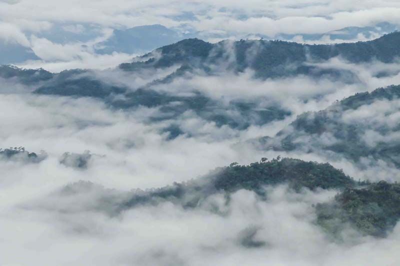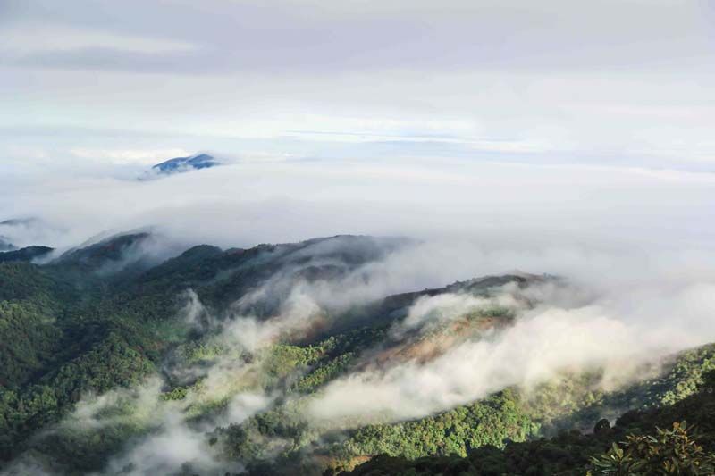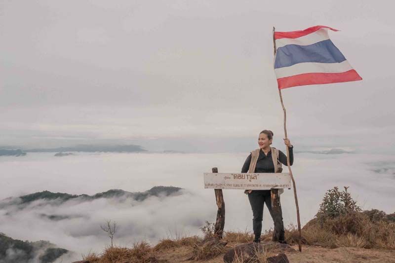 เช้าอีกวันจากจุดตั้งแคมป์ถึงยอดดอยทูเลมีระยะทาง 500 เมตร ใช้เวลาเดินไม่นาน…ซึ่งระหว่างทางก่อนที่จะถึงยอดดอยทูเล ก็จะเจอกับความงามของเทือกเขา และทะเลหมอกบริเวณที่เรียกว่า “เนินธง” จากนั้นก็เดินหน้ากันต่อยังยอดดอยทูเลซะที…ซึ่งมีระดับความสูงจากระดับน้ำทะเลอยู่ที่ 1,350 เมตร เป็นภูเขาที่สูงที่สุดในอำเภอท่าสองยาง เมื่อถึงยอดดอยก็ทำเอาคุณน้ำผึ้งถึงกับตะลึงในความอลังการของธรรมชาติ ที่นอกจากจะได้เห็นทะเลหมอกแล้ว ยังได้เห็นรุ้งกินน้ำไปพร้อมๆกันอีกด้วย เรียกว่ายิ่งขึ้นสูงยิ่งสวยจริงๆพอเสพธรรมชาติกันได้ที่ก็ถึงเวลาลงดอย โดยเส้นทางที่เดินลงจะเป็นอีกเส้นทางซึ่งมีความลาดชันสุดๆ แต่ก็เดินลงเร็วสุดๆ เหมือนกันระหว่างทางเลยทำเอาคุณน้ำผึ้ง ถึงกับเจ็บนิ้วเท้าร้องขอตัวช่วยเป็นผ้าก๊อซพันนิ้วเท้าเกือบทุกนิ้ว
