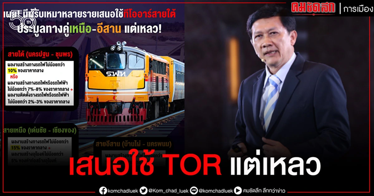 “ดร.สามารถ” เผยผู้รับเหมาเสนอใช้ TOR สายใต้”ประมูลรถไฟทางคู่”เหนือ-อีสาน แต่เหลว