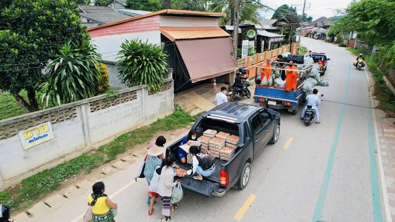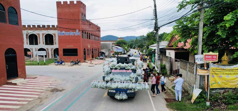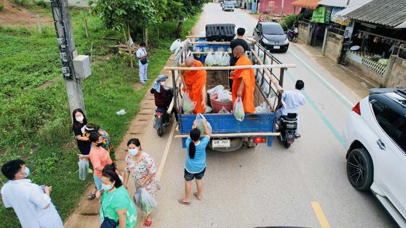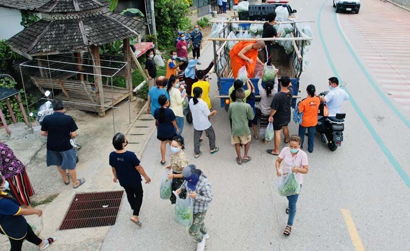 พระพบโชคนำ ‘รถพุ่มพวง’ แจก ‘ผักสด-ข้าว-ไข่ไก่’ ช่วยชาวบ้านกระทบโควิด