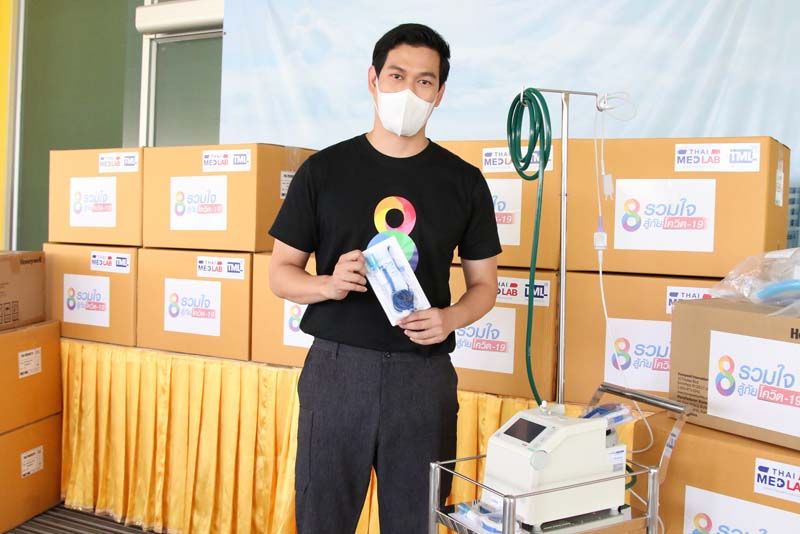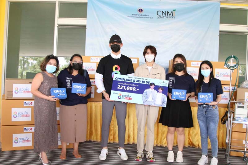 ยังคงเดินหน้าเป็นตัวแทนในการมอบของบริจาคเพื่อช่วยเหลือและสนับสนุนบุคลากรทางการแพทย์ตามโรงพยาบาลสนามและโรงพยาบาลต่างๆ ที่ยังขาดแคลนอุปกรณ์ทางการแพทย์อย่างต่อเนื่อง สำหรับโครงการช่อง 8 รวมใจสู้ภัยโควิด-19 ที่ครั้งนี้นำทีมโดย นงลักษณ์ งามโรจน์หัวหน้าเจ้าหน้าที่บริหารสถานีโทรทัศน์ช่อง 8 พร้อมด้วย อ๊อฟ-อัครพล ทองธราดล, โอห์ม-ฐิติวัฒน์ ฤทธิ์ประเสริฐ และ ฟลุ๊ค-ณธัช ศิริพงษ์ธร พร้อมกลุ่มแฟนคลับชาวมายบลูไปร่วมลงพื้นที่ในการส่งต่อกำลังใจให้กับเจ้าหน้าที่ทางการแพทย์ที่ โรงพยาบาลรามาธิบดีจักรีนฤบดินทร์ จังหวัดสมุทรปราการ มอบเครื่องออกซิเจน HFT500, ชุด PPE, หน้ากากอนามัย, เจลแอลกอฮอล์ ฯลฯ ให้นำไปใช้กับผู้ป่วยที่ติดเชื้อโควิด-19