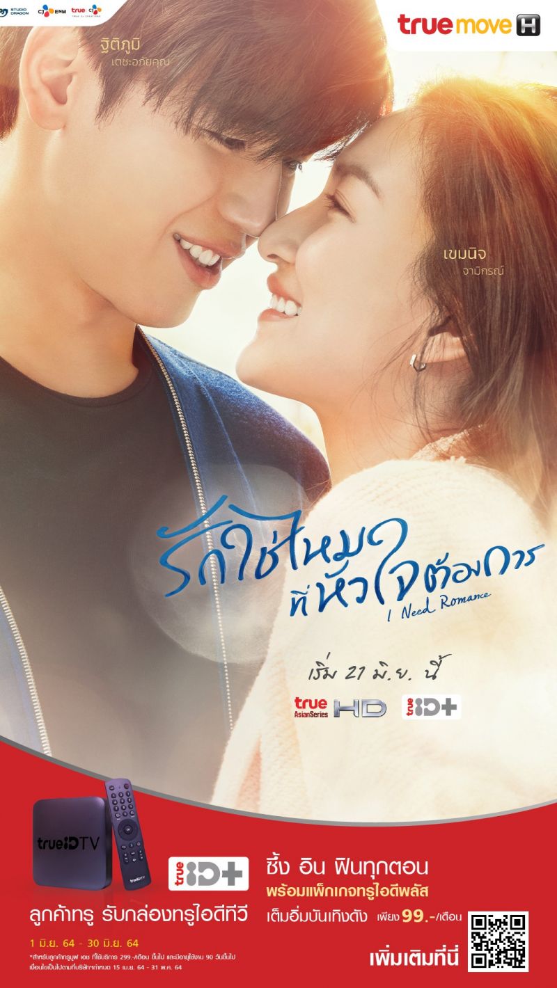 ติดตามชม I Need Romance รักใช่ไหมที่หัวใจต้องการ? ทุกคืนวันจันทร์-อังคาร 20.00 น. เริ่ม 21 มิถุนายนนี้ ทางช่องทรูเอเชียนซีรี่ส์เอชดี (ทรูวิชั่นส์ 239) และบนแพ็กเกจ ทรูไอดีทีวีพลัสลูกค้าทรู รับกล่องทรูไอดี พร้อมแพ็กเกจทรูไอดีพลัส เลือกชมได้ทันที ซีรีส์ ภาพยนตร์ รายการดัง อนิเมชั่นและอนิเมะ มากกว่า 2,000 เรื่อง เพียง 99 บาทต่อเดือน โปรโมชั่นตั้งแต่ 1 มิ.ย. 64 – 30มิ.ย. 64