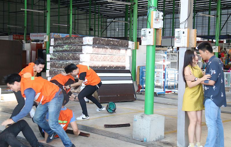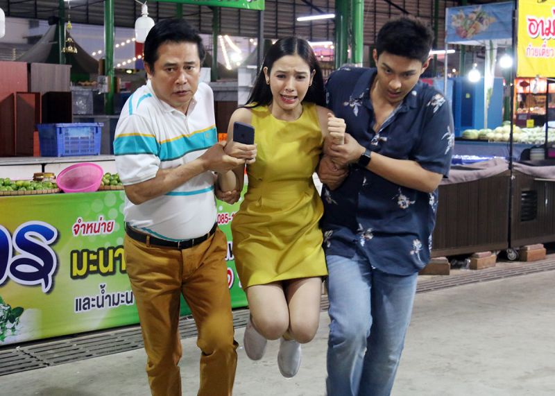 แต่ก่อนจะไปชมเบื้องหน้า มีฉากเบื้องหลังสนุกๆ มาเมาท์ให้ฟังกับฉากที่เยี่ยมช่วยหนูรุ้งจนโดนลูกหลง พี่เบิร์ด-ภูมิภัทร ผู้กำกับฯ อยากให้ซีนนี้มีความบู๊เบาๆ ปนสวีทนิดๆ เลยขอซ้อมคิวยาวตั้งแต่แก๊งวินมอเตอร์ไซด์ตีกันจนถึงช่วงที่โหนต้องดึงตัวจีนให้พ้นจากรัศมีการต่อสู้ งานนี้โหนกะจังหวะแม่นเป๊ะดึงตัวจีนหลบมายืนสบตากันปิ๊งๆได้ภาพหวานฟินๆ ของพระ-นางมาเอาใจแฟนละครกันอีกแล้วครับผม – ส่วนคิวบู๊ที่โหนต้องโดนลูกหลง ก็ไม่มีพลาดผ่านฉลุย จะมีก็แต่เสียงก๊อบแก๊บของข้อเข่าพระเอกนิดหน่อย เพราะต้องลุกๆ ล้มๆ อยู่หลายมุมกว่าจะได้ภาพสวยถูกใจผู้กำกับฯ