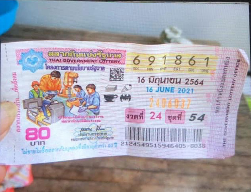 โดยบ้านหลังดังกล่าวเป็นบ้านปูนชั้นเดียวตั้งอยู่บ้าน ธวัชดินแดง ต.ธงธานี อ.ธวัชบุรี จ.ร้อยเอ็ด พบแม่ค้าลอตเตอรี่ดวงดีนั่งอยู่หน้าบ้านทราบชื่อคือนางสาวหนูพัด มัชเรศ 50 ปี โดย นางสาวหนูพัด ได้โชว์รูปถ่าย ลอตเตอรี่หมายเลข 691861 งวดประจำวันที่ 16 มิ.ย 64 ซึ่งถูกรางวัลที่ 1 ส่วนลอตเตอรี่ตัวจริงได้เอาไปเก็บไว้ที่ปลอดภัยแล้วเพราะกลัวจะหาย