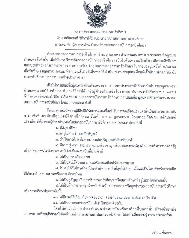 17 มิ.ย.64 นายเศรษฐศิษฏ์ ณุวงค์ศรี ประธานเครือข่ายคนรักษ์อาชีวศึกษาแห่งประเทศไทย (ค.ร.อ.ท.) เปิดเผยว่า ค.ร.อ.ท. ได้รับการร้องจากบุคคลทั้งในส่วนของรัฐและในส่วนของประชาชน ให้คัดค้านประกาศคณะกรรมการการอาชีวศึกษา เรื่องหลักเกณฑ์ วิธีการได้มาของนายกสภาสถาบันการอาชีวศึกษา การเสนอชื่อ ผู้สมควรดำรงตำแหน่งนายกสภาสถาบัน จำนวน 14 สถาบัน เพราะเชื่อว่าประกาศดังกล่าว ไม่ได้เปิดโอกาสให้ผู้ที่มีคุณสมบัติและมีความรู้ความสามารถในการบริหารจัดการอาชีวศึกษา ได้เข้าไปรับการสรรหา เพื่อแต่งตั้งให้เป็นนายกสภาสถาบัน อันเป็นการกำจัดสิทธิของบุคคลตามรัฐธรรมนูญ แห่งราชอาณาจักรไทย พ.ศ. 2560 หมวด 3 ว่าด้วยสิทธิและเสรีภาพของปวงชนชาวไทย เพราะจะเห็นได้จากประกาศของคณะกรรมการการอาชีวศึกษา ดังกล่าว ในข้อ 4 ซึ่งกำหนดให้ผู้มีสิทธิเสนอชื่อ ได้แก่ คณะกรรมการการอาชีวศึกษา สำนักงานคณะกรรมการการอาชีวศึกษา และผู้อำนวยการสถาบันการอาชีศึกษาหรือผู้ทำหน้าที่ผู้อำนวยการสถาบันการอาชีวศึกษา ซึ่งในเร็ว ๆนี้ ค.ร.อ.ท.จะเข้ายื่นหนังสือ เรื่อง ขอคัดค้านและให้ยกเลิกประกาศคณะกรรมการการอาชีวศึกษา เรื่องหลักเกณฑ์ วิธีการได้มาของนายกสภาสถาบันการอาชีวศึกษา การเสนอชื่อผู้สมควรดำรงตำแหน่งนายกสภาสถาบัน ต่อ น.ส.ตรีนุช เทียนทอง รัฐมนตรีว่าการกระทรวงศึกษาธิการ (รมวศธ.)
