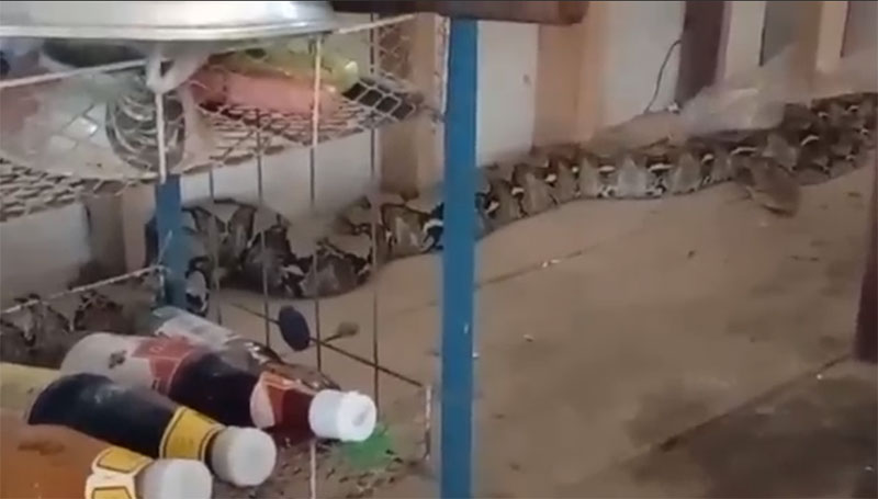 นางประเสริฐ เล่าให้ฟังว่า เมื่อเช้าที่ผ่านมาขณะที่ลูกสาวตื่นมาทำอาหารภายในครัวกรี๊ดลั่นจนทุกคนตกใจ เมื่อเข้ามาพบว่าเจ้างูเหลือมตัวขนาดใหญ่นอนเหยียดยาวอยู่ภายในครัว