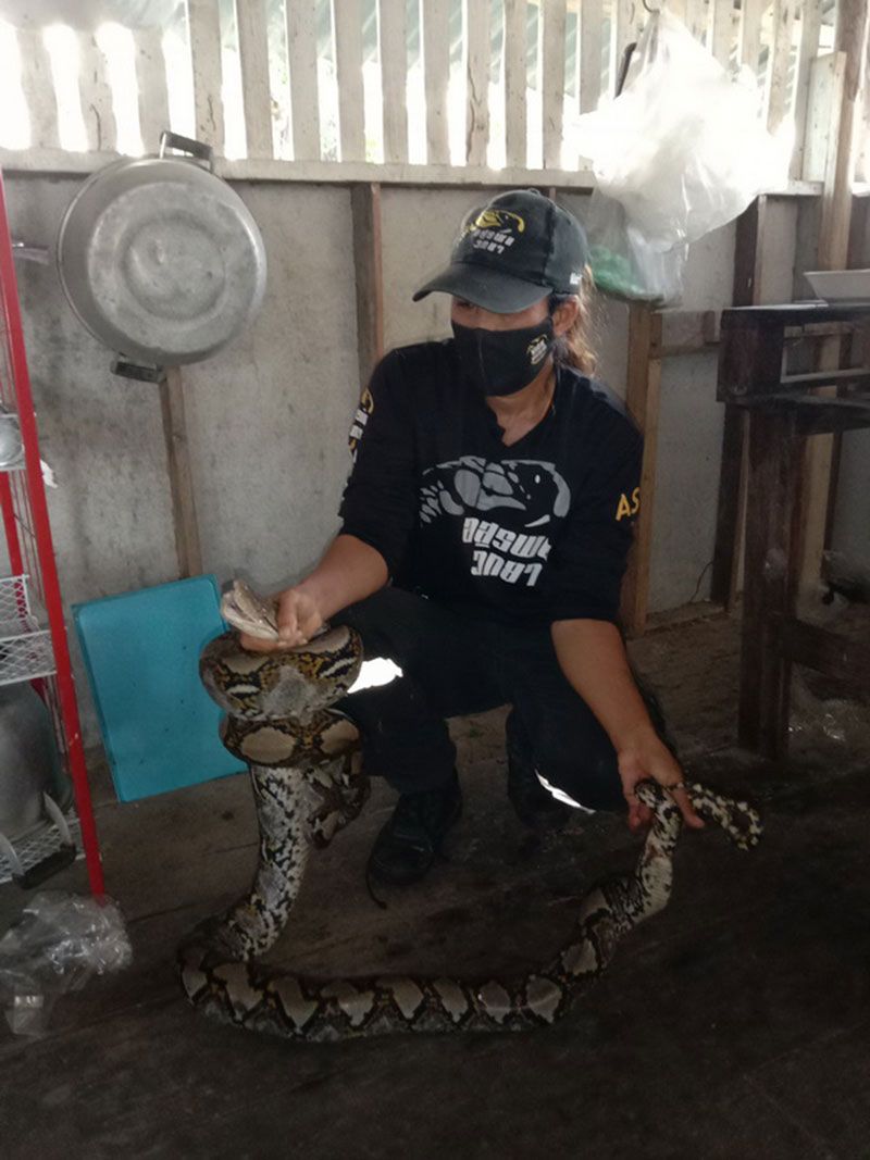 18 มิถุนายน 2564 เจ้าหน้าที่สมาคมกู้ภัยจังหวัดอ่างทอง ได้รับแจ้งขอความช่วยเหลือจับงูเหลือมตัวขนาดใหญ่ นอนอยู่ภายในครัวบ้านของนางประเสริฐ ชูโชติ อายุ 74ปี บ้านเลขที่ 27/1หมู่ 6 ตำบลอินทประมูล อำเภอโพธิ์ทอง จังหวัดอ่างทอง จึงเดินทางไปตรวจตรวจสอบพบว่า เป็นบ้านไม้ยกไต้ถุนสูงด้านล่างทำเป็นห้องครัว
