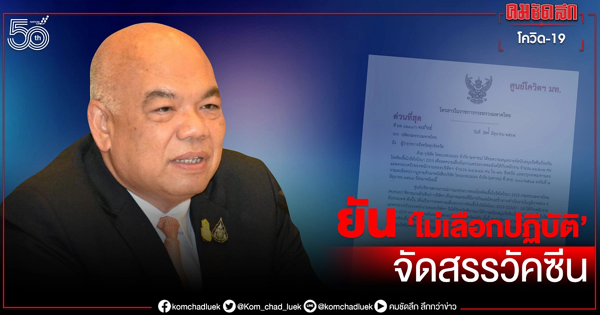 ทั้งนี้ขอให้ประชาชนมั่นใจในการดำเนินการจัดสรรวัคซีนของคณะกรรมการวัคซีนแห่งชาติ และศบค. ภายใต้มาตรฐานเดียวกัน ไม่มีเลือกปฏิบัติเพราะการฉีดวัคซีนเป็นวาระแห่งชาติที่ต้องดำเนินการให้ครอบคลุมรวดเร็วมากที่สุด
