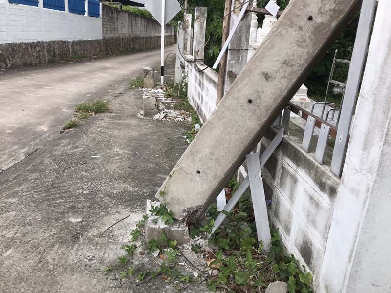 ผญบ.ร้องสื่อช่วยตามหาเจ้าของป้ายโฆษณา ล้มทับเจดีย์เก็บอัฐิ-ศาลาหลบแดดพัง