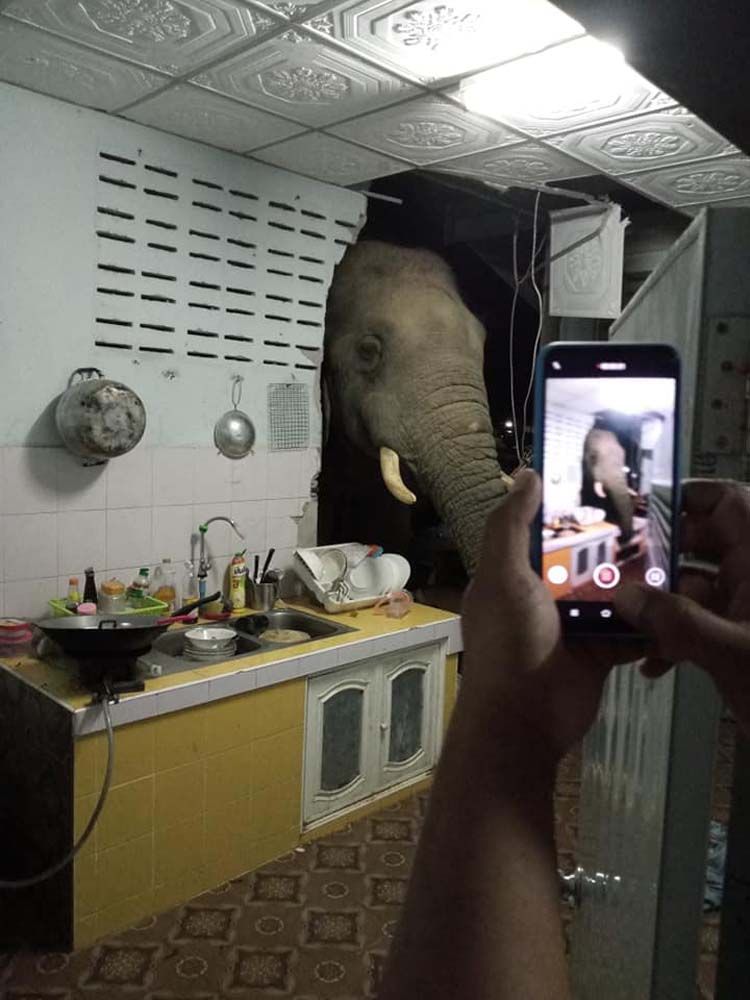 เมื่อเวลา 01.59 น. วันที่ 20 มิถุนายน 2564 ผู้ใช้เฟซบุ๊ก “รัชฎาวรรณ ผึ้งประสพพร” โพสต์ภาพและข้อความ ระบุว่า “มาได้ทุกวัน” ถูกช้างบุกบ้านที่หัวหินกลางดึก โผล่เข้าไปในห้องครัวหาของกิน แต่ไม่ได้ทำอันตรายใดๆ”
