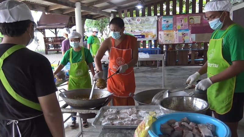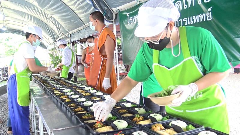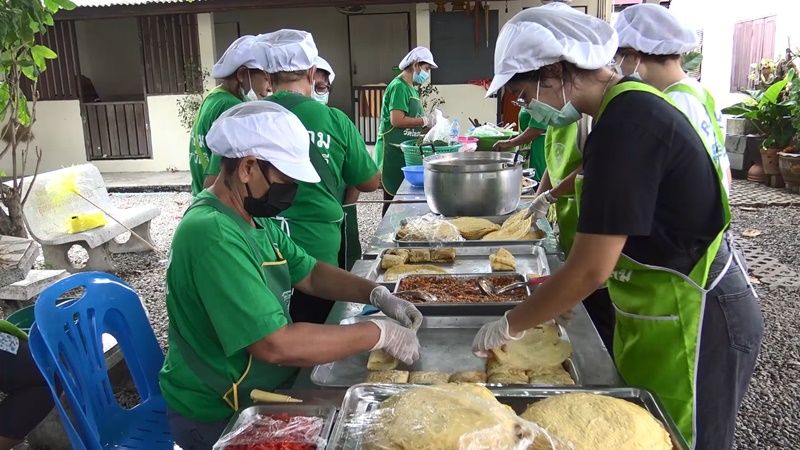 วัดไทรงามเปิดโรงทานวันแรกปีที่สอทำช้าวกล่องแจกแพทย์ พยาบาล จิตอาสา