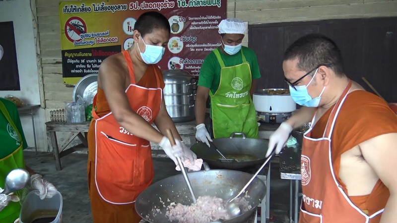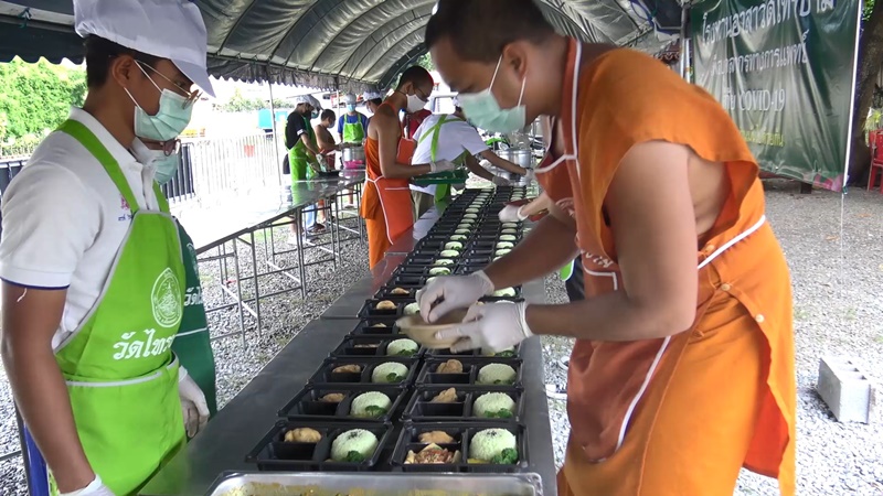 วัดไทรงามเปิดโรงทานวันแรกปีที่สอทำช้าวกล่องแจกแพทย์ พยาบาล จิตอาสา