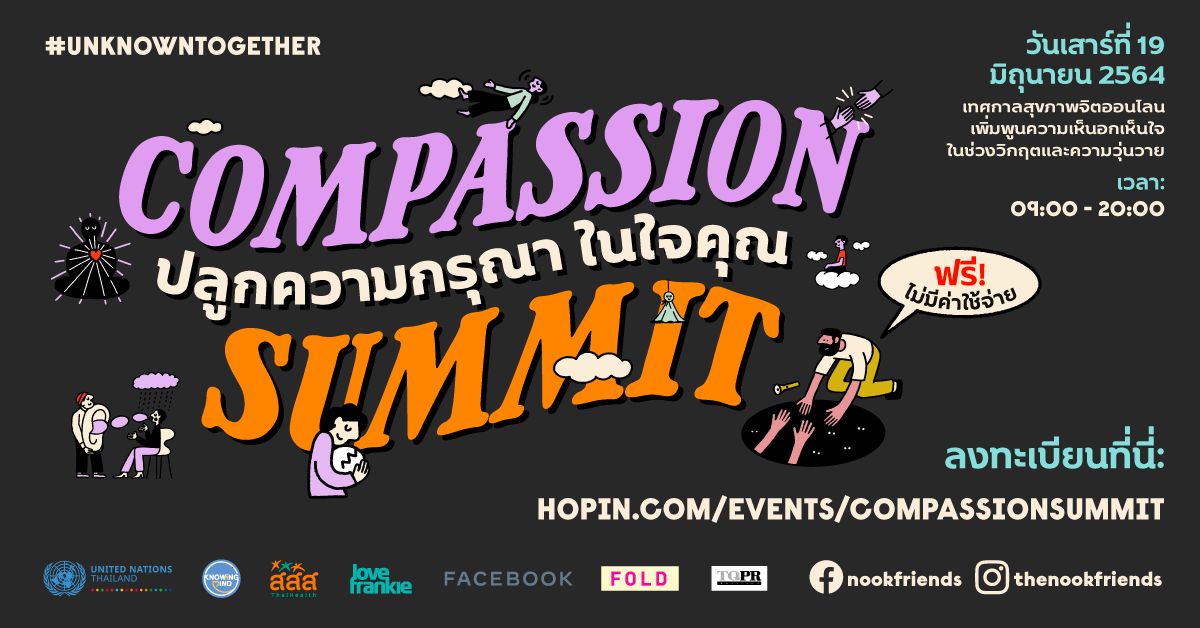 ทั้งนี้ แคมเปญ #UnknownTogether จะมีการจัดงานเสวนาปลูกความกรุณาในใจคุณ ครั้งที่ 1 ในวันที่ 19 มิถุนายน 2564 สามารถดูรายละเอียดเพิ่มเติมได้ที่ hopin.com/events/compassionsummit