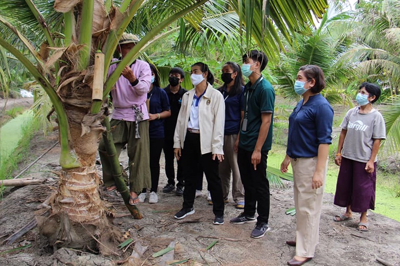 มหาวิทยาลัยราชภัฏหมู่บ้านจอมบึง นำโดย ผศ.สุนิสา โพธิ์พรม ประธานสาขาวิชานิเทศศาสตร์ และนวัตกรรมสื่อ คณะวิทยาการจัดการ และอาจารย์ ดร.รัชนิดา รอดอิ้ว อาจารย์ประจำสาขาวิชา ได้นำนักศึกษาจากโครงการ U2T เข้าปฏิบัติงานในชุมชน เพื่อสร้างงานรวมทั้งพัฒนาแก้ไขปัญหาและเศรษฐกิจของตำบลแบบพุ่งเป้าหมาย ทั้งการเริ่มพัฒนาทักษะการทำงานด้านผ่านระบบออนไลน์ การใช้เทคโนโลยีต่าง ๆ รวมทั้งทักษะเฉพาะด้านที่สอดคล้องกับงานพัฒนาชุมชน พร้อมกับการจัดทำข้อมูลของชุมชนและส่วนที่เกี่ยวข้อง เพื่อวิเคราะห์จุดอ่อน จุดแข็ง แต่ละตำบลในการทำแผนยกระดับเศรษฐกิจและสังคม ช่วยเหลือชุมชน โดยได้เข้าไปสวนมะพร้าวบ้านลุงแหวน ศรีโชติ อายุ 72 ปี และป้าวาสนา ศรีโชติ อายุ 59 ปีอยู่บ้านเลขที่ 3 หมู่ 6 ต.จอมประทัด อ.วัดเพลง มีเนื้อที่ปลูกมะพร้าวอยู่ 5 ไร่เศษ ร่วมกับปลูกมะละกอ แตงไทยและผักอีกหลายชนิด ลักษณะยกร่องสวน