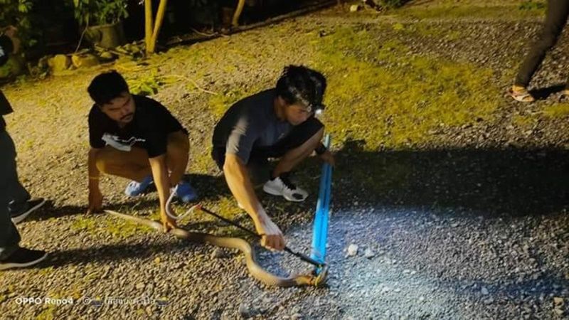 เมื่อเวลา 20.00 น.คืนวันที่ 17 มิ.ย.64 ที่ผ่านมา นายจักรกฤษ ทองศิล พร้อมทีมงานบรรเทามิตรภาพร่ามใจ นครศรีธรรมราช สาขาทุ่งสง ได้รับแจ้งขอความช่วยเหลือจากนายสนธยา นเศรษฐพงศ์ อายุ 50 ปีว่า มีงูจงอาจตัวใหญ่โผล่หน้าบ้านใต้ต้นไม้ ขอให้มาช่วยจับไปปล่อย เพราะเกรงว่าจะเป็นอันตรายกับคนในบ้าน จึงรับเดินทางไปตรวจสอบ