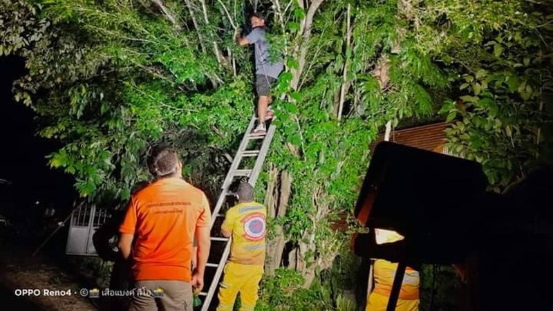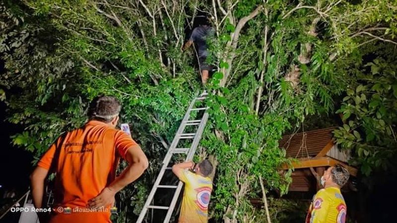 สุดยอดกู้ภัยเมืองคอน! ปีนต้นไม้สูง 6 เมตรจับงูจงอางกลางดึก