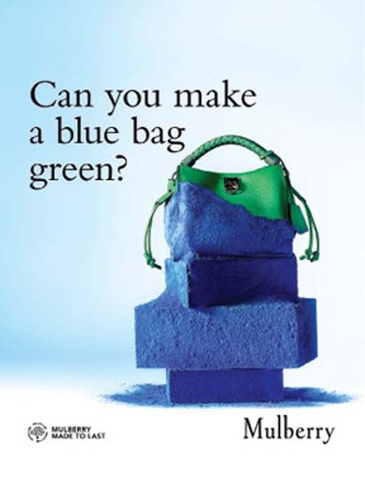 Mulberry เป็นแบรนด์ที่ก่อตั้งขึ้นมาจากการให้ความสำคัญกับชุมชนและท้องถิ่นมาโดยตลอด และตั้งแต่เริ่มต้น เรายังคงมุ่งมั่นที่จะผลิตสินค้าจำนวนมากกว่าครึ่งหนึ่ง ณ โรงงานในเมือง Somerset เช่นเดิม ปัจจุบันโรงงานของเราทั้งหมดในเมืองนี้มีการชดเชยปริมาณคาร์บอนให้เป็นศูนย์ และทุกคนที่ทำงานในโรงงานเหล่านี้จะได้รับค่าจ้างตามค่าครองชีพที่แท้จริง ถึงแม้ Mulberry จะมีความภาคภูมิใจในก้าวแห่งความสำเร็จนี้ แต่เรารู้ว่ายังมีอีกหลายอย่างที่เราต้องทำเพื่อสร้างการเปลี่ยนแปลง และนั่นคือเหตุผลที่เราตั้งคำถามอย่าง เช่น “คุณจะทำกระเป๋าสีน้ำเงินให้เป็นสีเขียว ซึ่งหมายถึงการมีความเป็นมิตรต่อสิ่งแวดล้อมได้ด้วยหรือไม่”