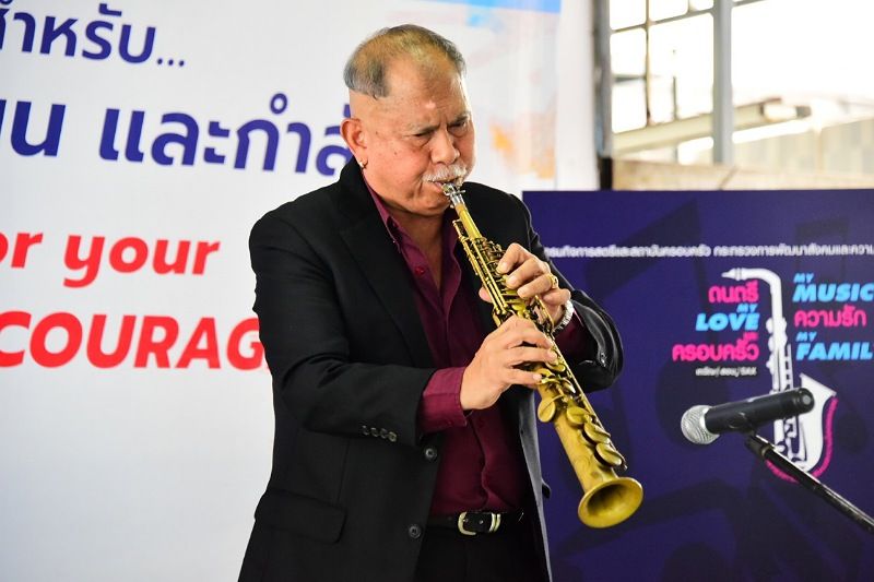 ทั้งนี้ นายจุติ ไกรฤกษ์ รัฐมนตรีว่าการกระทรวงการพัฒนาสังคมและความมั่นคงของมนุษย์ ได้เปิดตัว คุณเมธวัชร์ (เทวัญ) ทรัพย์แสนยากร นักแซกโซโฟนระดับตำนาน เป็นผู้สอนการอบรมหลักการพื้นฐานของการเป่าแซกโซโฟน พร้อมมอบแซกโฟนจากนายชวน หลีกภัย ประธานรัฐสภา เพื่อเป็นขวัญกำลังใจแก่ผู้เรียนโดยมีนางสาวสุนีย์ ศรีสง่าตระกูลเลิศ รองอธิบดีกรมกิจการสตรีและสถาบันครอบครัว คณะผู้บริหารกระทรวง พม. ข้าราชการและเจ้าหน้าที่ฯ เข้าร่วมในพิธีดังกล่าว