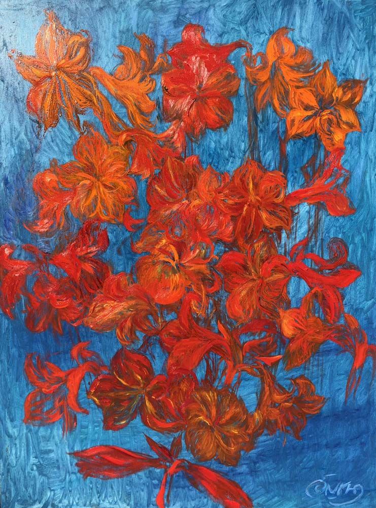 “ดอกไม้ คือสิ่งมีชีวิตที่สร้างสรรค์สีสันความงามให้แก่โลก อีกทั้งยังเป็นตัวอย่างสุนทรียภาพของสีคู่ตรงข้ามในธรรมชาติที่ชัดเจนที่สุด สีที่ตัดกัน สีคู่ตรงข้าม (Complementary Colors) สีคู่ปฏิปักษ์ เป็นสีที่มีค่าความเข้มข้นสูงในตัวเอง เมื่ออยู่ชิดกันจะตัดกันอย่างรุนแรงที่สุด การจะกระทำให้สิ่งตรงข้ามอยู่ร่วมกันได้อย่างสวยงามนั้นต้องใช้ หัวใจ สติ สมาธิ ความรอบคอบ เพื่อให้ยังคงคุณค่า ความบริสุทธิ์แห่งสีตน ทุกสีอยู่ในจังหวะของตนเฉกเช่นเดียวกับผู้คน เพราะโลกนี้เต็มไปด้วยความแตกต่าง แต่ถ้าเราอยู่กันได้ในจังหวะในที่ของตน เราก็จะอยู่กันได้อย่างสดใส และสวยงามเฉกเช่นเดียวกับดอกไม้”