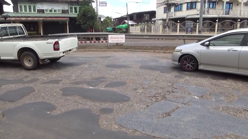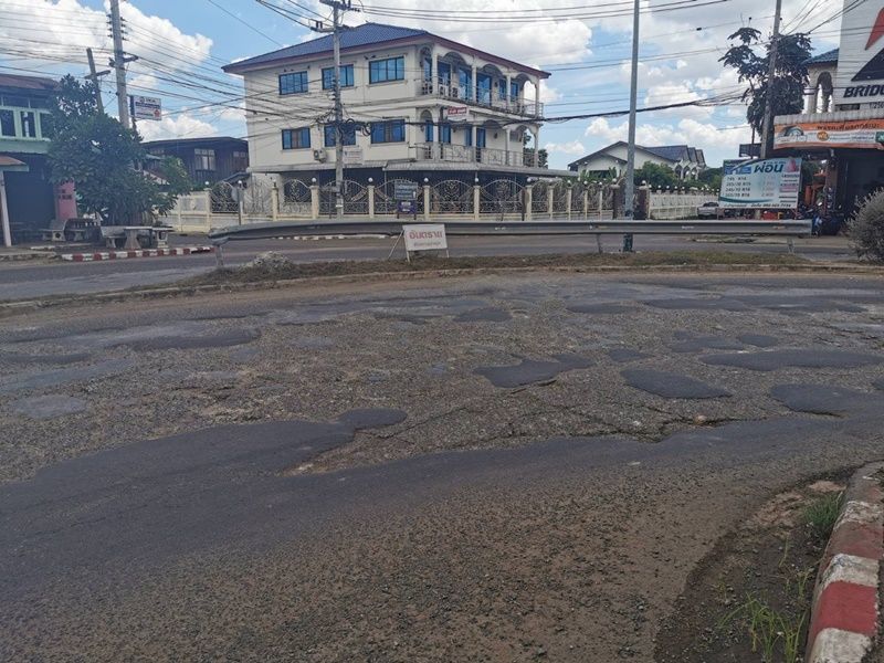ชาวบ้านร้องถนนทางโค้งใจกลางอำเภอปะคำเป็นหลุมขนาดใหญ่เกิดอุบัติเหตุบ่อย