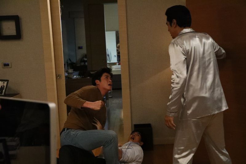 โดยเป็นฉากหลังจากวัทฟื้นขึ้นมาอยู่ในร่างของเตช(กระทิง) ซึ่งเป็นร่างคนรวยมีชีวิตเพอร์เฟคทุกอย่าง นั่นคือสิ่งที่วัทโหยหามาตลอดทั้งชีวิต ทำให้เขาคิดสวมรอยอยู่ในร่างของเตชต่อไป ส่วนเตชในร่างวัท(อาเล็ก) ต้องการร่างและชีวิตที่กำลังรุ่งของตัวเองคืน เลยบุกไปหาวัทเพื่อให้สลับร่างคืน แต่วัทไม่มีทางที่จะคืนร่างนี้ให้เตช ซึ่งฉากนี้ผู้กำกับ อ้อ-วิลาวัณย์ สังฆะภิบาล ให้ 2 หนุ่มดีไซน์คิวบู๊เองเต็มที่ งานนี้หนุ่มอาเล็กที่มีสกิลเทควันโด เลยเสนอท่าเตะ ต่อย เหวี่ยงกระแทก แต่ด้วยพื้นที่ค่อนข้างแคบ ทำให้ 2 หนุ่ม ออกเสต็ปได้ไม่มาก เลยจัดให้แค่พอหอมปากหอมคอ หลังจากซักซ้อมคิวกันจนคล่อง จึงเริ่มถ่ายจริงทันที เริ่มที่ อาเล็กแอบย่องเข้ามาที่ห้องนอนของกระทิง เพราะต้องการจะทวงร่างของตัวเองคืน ทำให้กระทิงที่กำลังนอนอย่างสบายใจต้องรีบลุกขึ้นพรวดทันที เพราะไม่คิดว่าอาเล็กจะกล้าบุกมาตน ทางด้านอาเล็กไม่รอช้ารีบกระชากตัวกระทิงให้ไปสลับร่าง ซึ่งจะสลับร่างคืนได้ต้องเป็นคืนที่พระจันทร์แดงเท่านั้น แต่กระทิงไม่ยอมคืนร่างนี้ให้ และตั้งใจยึดร่างนี้ตลอดไป ทำให้อาเล็กเดือดจัดต่อยกระทิงทันที แต่ยิ่งต่อยกันเท่าไหร่ทั้งคู่ก็เจ็บตัวเหมือนกัน จนกระทั่งอ่ำรับบท “ธนภพ” ผู้เป็นพ่อ กับปิ่นรับบท “ฐิติยา” ผู้เป็นแม่ ได้ยินเสียงดังโครมครามจนต้องรีบขึ้นมาดู พออ่ำกับปิ่นเห็นอาเล็กก็ไม่พอใจที่ตามมาราวีกระทิงไม่เลิก เลยรีบไล่ให้อาเล็กออกจากบ้านไป อาเล็กจึงพยายามยืนยันตัวตนว่าเขาเป็นลูกของท่าน ทำให้กระทิงกลัวทุกอย่างจะโป๊ะแตกเสียก่อนเลยรีบคว้าแท่งปูนหอไอเฟลฟาดไปที่หัวอาเล็กอย่างแรงจนอาเล็กล้มลงสลบทันที แต่สุดท้ายกระทิงก็สลบตาไปด้วย ทำให้อ่ำกับปิ่นแปลกใจทันที