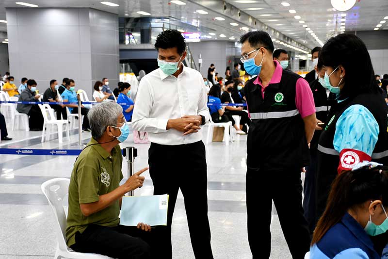 หลังจากนั้นได้เดินทางต่อไปตรวจเยี่ยมการให้บริการฉีดวัคซีน ณ ศูนย์ฉีดวัคซีนกลางบางซื่อ โดยมุ่งกลุ่มผู้สูงอายุและ 7 โรคเรื้อรัง ในพื้นที่กรุงเทพฯ ที่ลงทะเบียนผ่านหมอพร้อมและถูกเลื่อนนัดในเดือนมิถุนายน โดยได้จัดเตรียมวัคซีนไว้รองรับวันละ 2,000 โดส ส่วนภาพรวมการฉีดวัคซีน ที่สถานีกลางบางซื่อ ตั้งแต่วันที่ 24 พฤษภาคม 2564 เป็นต้นมา ให้บริการฉีดวัคซีนไปแล้วกว่าสองแสนโดส ซึ่งการให้บริการเป็นไปอย่างเรียบร้อย