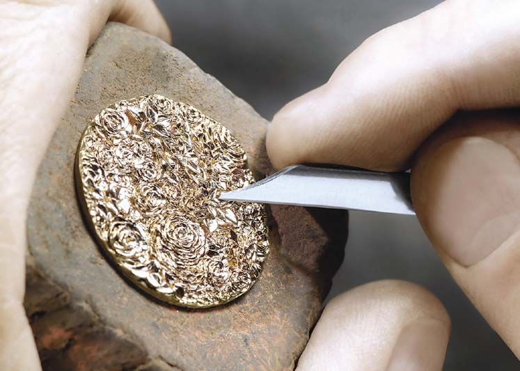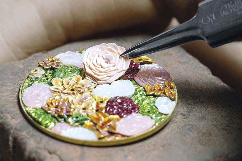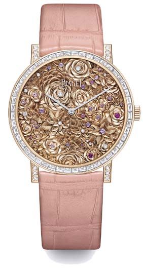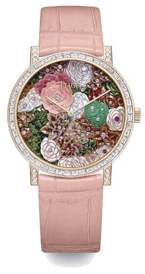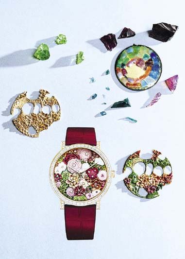 Glyptic and Enamel Art Timepieces เพียเจต์ ถือเป็นหนึ่งในแบรนด์ที่หลงใหลใน Métiers d’Art เป็นอย่างมาก ดังที่ปรากฏในเรือนเวลาเพียเจต์ โรส ที่ผ่านมา ไม่ว่าจะเป็นการใช้เทคนิคประดับแบบดั้งเดิมอย่าง Micro-mosaic, การเลือกใช้เนื้อไม้ หรือ หินมารังสรรค์ผ่านหัตถศิลป์เก่าแก่อย่าง Marquetry,การปักแพทเทิร์นบนพื้นหน้าปัด, การแกะสลัก, ขัดลายด้วยเทคนิคกิโยเช่ ไปจนถึงการลงยา