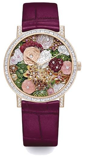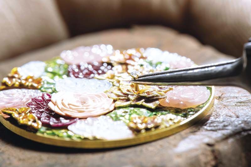 มาปีนี้ เมซงยังคงแฝงไว้ซึ่งศาสตร์และศิลป์อันเชี่ยวชาญได้อย่างน่าสนใจ กับ 4 เรือนเวลาใหม่ Altiplano – Rose Bouquet Métiers d’Art โดยไฮไลต์อยู่ที่ดีไซน์หน้าปัดที่ถูกเติมเต็มด้วยหมู่มวลดอกไม้ล้ำค่าอย่าง กุหลาบ อีฟเพียเจต์ ผ่านฝีมือการรังสรรค์ของ 2 ศิลปินมากความสามารถ อย่าง Dick Steenman ผู้เชี่ยวชาญด้านงานศิลป์บนเรือนเวลาที่เน้นการนำเสนอด้วยเทคนิคการแกะสลัก ตกแต่งด้วยอัญมณี และ Anita Porchet ศิลปินนักลงยาที่มีชื่อเสียงที่สุดในอุตสาหกรรมนาฬิกา ถ่ายทอดผลงานผ่านหลากหลายวิธีเพื่อแต่งแต้มจินตนาการให้มีมิติมากที่สุด ไม่ว่าจะเป็น cloisonné, champlevé, grisaille หรือ paillonné และนี่คือ 4 งานศิลป์ล้ำค่าที่หยิบเอา ทองคำ, หินสี อาทิ อิมพีเรียล แจสเปอร์, คอรัล,คริสโซเพรส, มูไคต์ รวมถึง มาเธอร์ออฟเพิร์ล มารังสรรค์