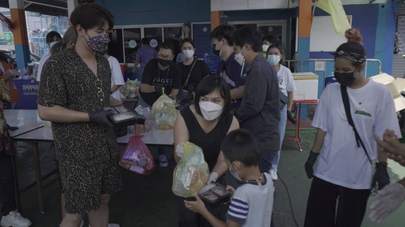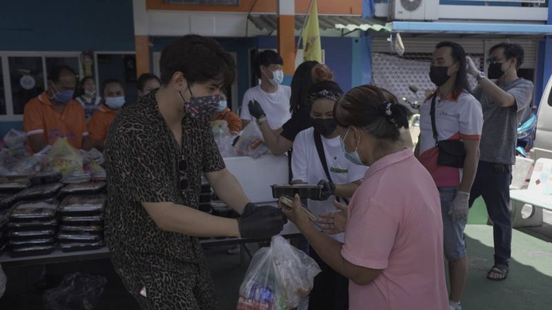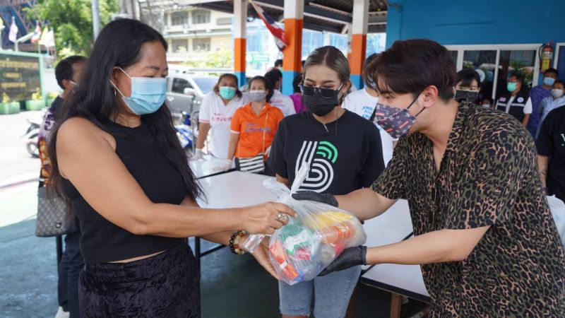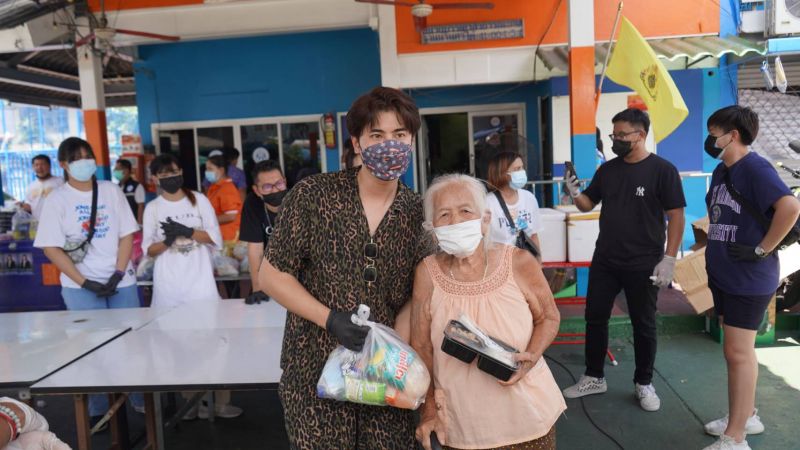 ‘เติร์ก’นำทีม นำข้าวสาร อาหาร เเละหน้ากากอนามัย บริจาคชุมชุนคลองเตย