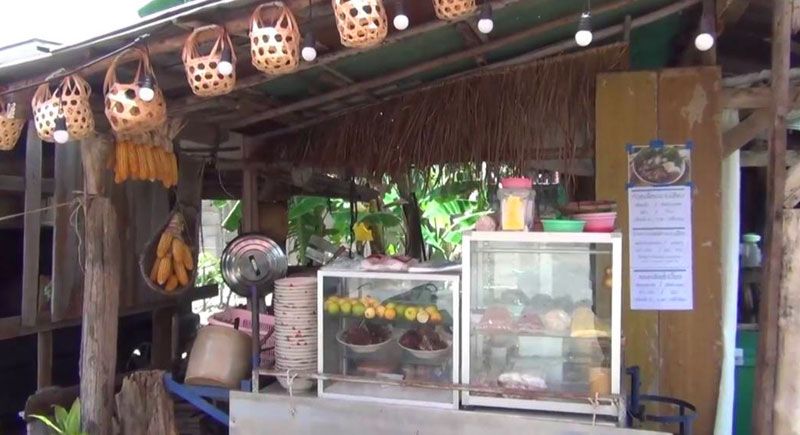 ในก๋วยเตี๋ยวพริกลาบ นอกจากจะมีเครื่องก๋วยเตี๋ยวทั่วไปแล้ว เช่น เส้น ผัก หมู ลูกชิ้น และยังมีลาบหมูคั่วใส่ลงไปเพิ่มความอร่อย ในเลือดที่ใช้ทำน้ำตกจะนำมาปรุงรสและนำมากรอง ก่อนจะนำมาปรุงอาหารผสมกับพริกลาบในน้ำซุป ทำให้รสชาติกลมกล่อมเข้ากัน เวลาทานจะแนะนำให้ลูกค้า เติมน้ำพริกลาบเพิ่มได้ตามความชอบ เผ็ดมากเผ็ดน้อย และบีบมะนาวสดลงไป ไม่ต้องปรุงรสใดๆเพิ่มอีก จะมีผักพื้นบ้าน คือใบมะตูมซาอุ เป็นผักเครื่องเคียง เท่านี้ก๋วยเตี๋ยวก็อร่อยเด็ดแล้ว โดยจะขายในราคาถ้วยละ 45-50 บาท แต่หากใครได้แวะไปอุดหนุนโฮมสเตย์จะจัดเป็นชุดในราคา 80 บาท
