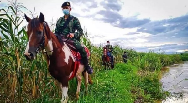 The Thai cavalry has tightened security along the Moei River (Thaungyin River) as a measure to prevent border crossing during the Covid-19 pandemic, according to local sources.