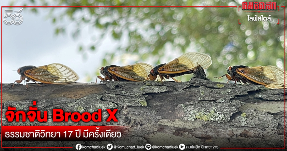 “จักจั่น Brood X” เป็นสายพันธุ์หนึ่งของจักจั่นที่ใช้เวลาในการฝังตัวอยู่ใต้ดินนานถึง 17 ปี จักจั่นชนิดนี้ดวงตาสีแดง ลำตัวสีดำ ปีกสีส้ม นับเป็นปรากฏการณ์ที่น่าขนลุกสำหรับคนที่กลัวแมลง
