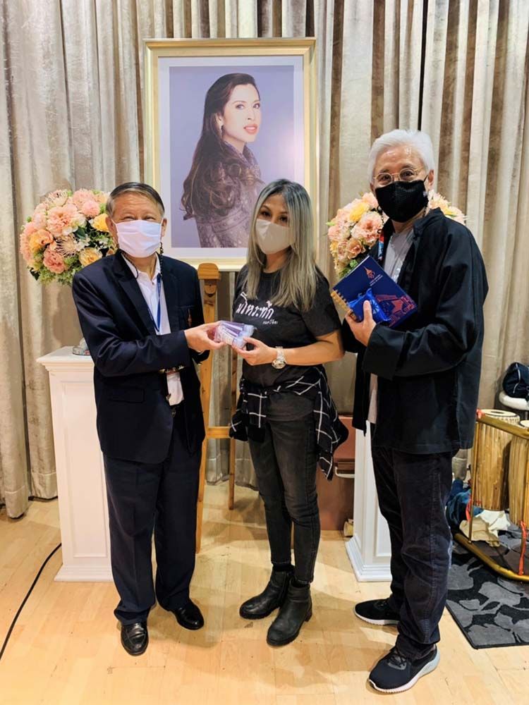 นอกจากเสียงเพลงแล้วเป่าจินจง ยังนำ Food Truck ของละคร “เก็บแผ่นดิน” ไปร่วมแจกเครื่องดื่มของว่าง บริการแก่เจ้าหน้าที่ทุกท่านฟรีอีกด้วย เป่าจินจง ขอขอบคุณ นพ.นิธิ มหานนท์ เลขาธิการราชวิทยาลัยจุฬาภรณ์,พล.อ.ต.นพ.สันติ ศรีเสริมโภค รองเลขาธิการ ราชวิทยาลัยจุฬาภรณ์, นพ.ภูมินทร์ ศิลาพันธ์ รองผู้อำนวยการโรงพยาบาลจุฬาภรณ์ และรศ.นพ.องค์การ เรืองรัตนอัมพร รองเลขาธิการราชวิทยาลัยจุฬาภรณ์ ดูแลองค์การตามพระดำริ และงานส่วนพระองค์ ซึ่งเป็นผู้มอบของที่ระลึกให้แก่นักดนตรี สำหรับละคร “เก็บแผ่นดิน” ที่ฝ่าโควิดมาถึง 3 ระลอก ผู้จัด“อาตู่-นพพล” อัพเดตว่าเหลือแค่คิวปิดกล้องที่เป็นฉากใหญ่ซึ่งต้องเตรียมงานควบคุมการถ่ายทำให้เป็นไปตามมาตรการกองถ่ายของ ศบค. อย่างเคร่งครัด