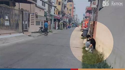 A Facebook post of a Covid-19 infected worker waiting for medical personnel to pick him up in front of a dormitory in Pathum Thani province went viral among netizens on Saturday.