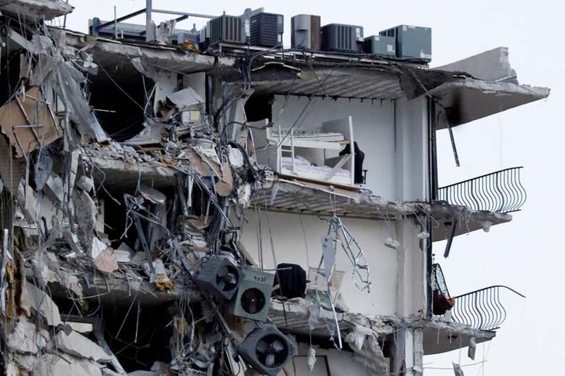 พังทั้งแถบ : สภาพเตียงนอนและข้าวของต่างๆ ในห้องพักของอาคารคอนโดมิเนียมสูง 12 ชั้น ในเมืองเซิร์ฟไซด์ นอกไมอามี บีช ของเมืองไมอามี รัฐฟลอริดา สหรัฐอเมริกา ซึ่งอยู่ๆ ก็เกิดพังถล่มแบบไม่มีปี่ไม่มีขลุ่ยช่วงกลางดึกคืนวันพฤหัสบดีที่ผ่านมา ตอนนี้มีผู้เสียชีวิตแล้ว 12 ศพแต่คาดว่ายังมีผู้สูญหายที่อาจติดอยู่ใต้ซากอีกกว่า 160 คน