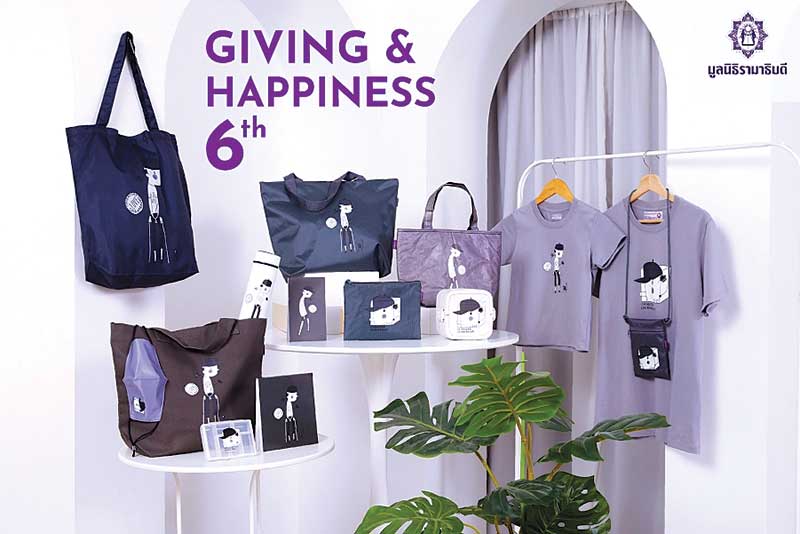 ของที่ระลึกการกุศลคอลเลคชั่น Givingand Happiness ปีที่ 6 มีทั้ง เสื้อยืดทีเชิ้ตสำหรับผู้ใหญ่ และเด็ก (199 และ 169 บาท)กระเป๋าพับเก็บ (120 บาท) กระเป๋าดินสอผ้าลิปสต๊อป (59 บาท) กระเป๋าสะพายผ้าลิปสต๊อป (120 บาท) กระเป๋าเก็บอุณหภูมิ (279 บาท) กระเป๋าแคนวาส (250 บาท) กระเป๋าสะพายใบเล็กผ้าลิปสต๊อป (129 บาท) หน้ากากผ้า (69 บาท) กระบอกน้ำเก็บอุณหภูมิ (350 บาท) กล่องยา (59 บาท) กล่องข้าว (250 บาท) สมุดโน้ต (49 และ 69 บาท ตามขนาด) ปลอกหมอนสวดมนต์(180 บาท) เป็นต้น ร่วมช้อปได้บุญกับของที่ระลึกคอลเลคชั่นพิเศษจาก 4 ศิลปินได้แล้ววันนี้ที่มูลนิธิรามาธิบดีฯ หรือผ่านช่องทางออนไลน์ www.ramafoundation.or.th และ Line@Ramafoundation แอปพลิเคชั่น JD CENTRAL ร่วมบริจาคเงินได้ที่ ธ.ไทยพาณิชย์ บัญชีกระแสรายวัน สาขารามาธิบดี เลขที่ 026-3-05216-3ธ.กรุงเทพ บัญชีกระแสรายวัน สา ขาศูนย์การแพทย์สมเด็จพระเทพรัตน์ (รพ.รามาธิบดี)เลขที่ 090-3-50015-5 สอบถาม โทร.02-2011111 ในวันและเวลาราชการ