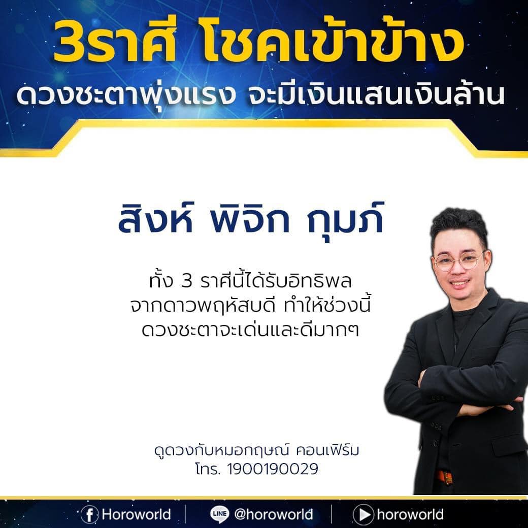 28 มิ.ย.64 เพจเฟซบุ๊ก หมอกฤษณ์ คอนเฟิร์ม ดูดวงฟรีแก่ทุกท่าน หรือ นายศุกฤษณ์ ปทุมศรีวิโรจน์ ได้โพสต์ภาพและข้อความผ่านเพจเฟซบุ๊ก ทำนาย 3 ราศี โชคเข้าข้าง ดวงชะตาพุ่งแรง จะมีเงินแสนเงินล้าน สิงห์ พิจิก กุมภ์ ทั้ง 3 ราศีนี้ ได้รับอิทธิพลจากดาวพฤหัสบดี ทำให้ช่วงนี้ดวงชะตาจะเด่นและดีมากๆ