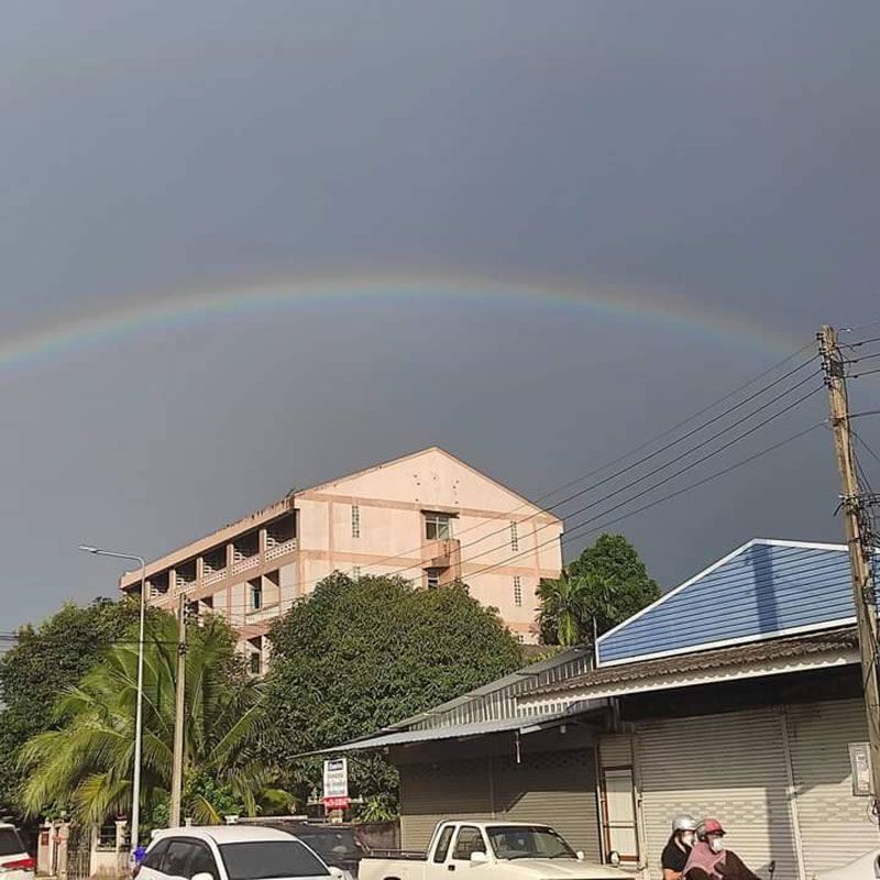 โซเชียลแชร์! ภาพถ่ายรุ้งกินน้ำ เหนือท้องฟ้าเมืองคอน เชื่อเป็นลางดี