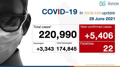 Thailand records 22 deaths, 5,406 new infections